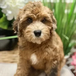 Hey! I am a Male Cavapoo 2nd Gen. I was born on March 14, 2025. I am vaccinated and dewormed up to date, microchipped and ready for my new forever home! If you would like to come to Shake A Paw Union for a puppy play date, give us a call at 908-688-2600!