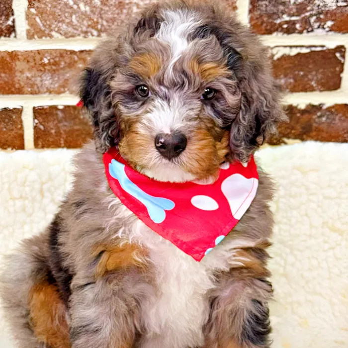 Hey! I am a Male Mini Bernedoodle 2nd Gen. I was born on March 28, 2025. I am vaccinated and dewormed up to date, microchipped and ready for my new forever home! If you would like to come to Shake A Paw Union for a puppy play date, give us a call at 908-688-2600!