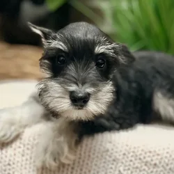 Hey! I am a Male Mini Schnauzer. I was born on January 09, 2025. I am vaccinated and dewormed up to date, microchipped and ready for my new forever home! If you would like to come to Shake A Paw Union for a puppy play date, give us a call at 908-688-2600!