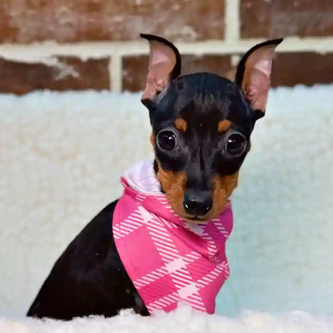 Hey! I am a Female Miniature Pinscher. I was born on January 21, 2025. I am vaccinated and dewormed up to date, microchipped and ready for my new forever home! If you would like to come to Shake A Paw Union for a puppy play date, give us a call at 908-688-2600!