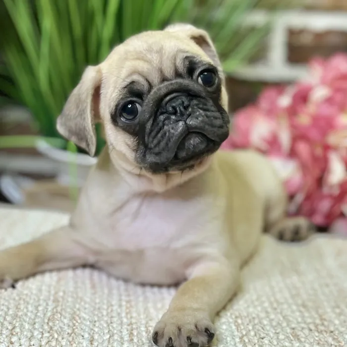 Hey! I am a Male Pug. I was born on March 28, 2025. I am vaccinated and dewormed up to date, microchipped and ready for my new forever home! If you would like to come to Shake A Paw Green Brook for a puppy play date, give us a call at 732-968-2522!